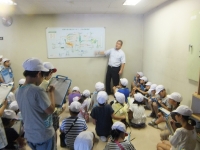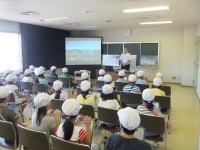 スライドで施設の概要を聞き、実際にごみを集めている場所や焼却炉の外側、
