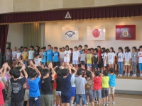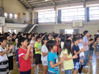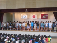 2016年7月20日 16時51分 終業式後に、7月27日(水)に行われる「市水泳交歓会」に出場する特設水泳部と、8月18日(木)に行われる「地区音楽祭」に出場する特設合唱部の選手壮行会が行われました。