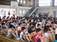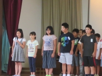 麻生校長からは「自分の命を大切にしてほしい・夏休み中もすてきなあいさつをしてほしい」との話があり、その後、2年・4年・5年の代表児童よる作文発表を行い終業式を終えました。