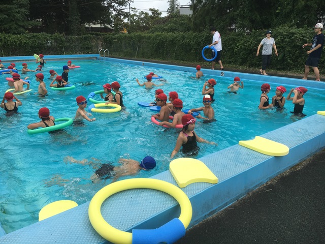 初回の本日午前の部では,1 ~ 6年生46名の子どもたちが元気にプールでのひと時を過ごしました,このままの天候でしたら,午後の部も行うことができます。夏休み期間中に,水ともっともっと仲良しになりませんか?多くのお友だちが来るのを楽しみに待っています。