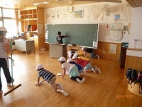 授業参観後、体育館に移動し、親子活動としてエアロビクスを行いました。講師として本校PTA副会長の大河原里美さんをお招きし、楽しく活動を行いました。親子で汗を流して体を動かすことで、いつも以上に会話も弾み、充実した時間となりました。