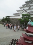 鶴ヶ城見学では、天守閣の大きさに驚きながら、展望層から会津の町を眺めました。