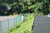 約1時間,通路脇土手やミニ校庭,学校園,さらにはプール周辺を除草していただきました。