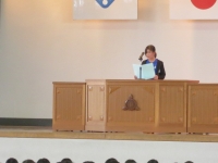 校長からは,「先生の話をよく聞いて、安全に学習してほしい。」との話がありました。また,6年生代表の舘脇さくらさんからは,「50mの記録を少しでも縮められるように頑張りたい。」などのめあてが発表されました。