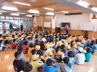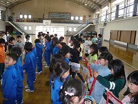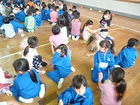 2年生が,「遊ぼう会」に招待してくれました。一緒に「太鼓で集まれ」や「かもつれっしゃ」のゲームをして,すっかり打ち解けた様子でした。また,素敵なメダルやアサガオの種もプレゼントしてもらい,1年生はとても喜んでいました。2年生のみなさん,これからもよろしくお願いします。