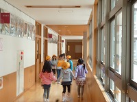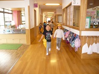 2年生が,学校の中を案内してくれました。2年生は,教室へ入るときのあいさつのしかたや,どの教室がどんなことに使うかを,親切に教えてくれました。1年生はたくさんのものを見つけ,たくさんのことに気づき,喜んで教室へ帰ってきました。
