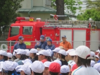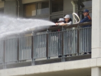 避難後に消防署の方のご指導による消火器訓練と消火栓からの放水訓練がありました。