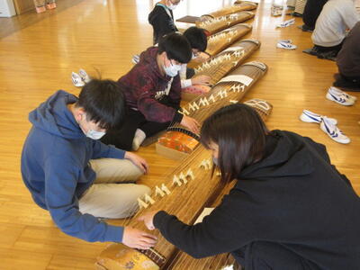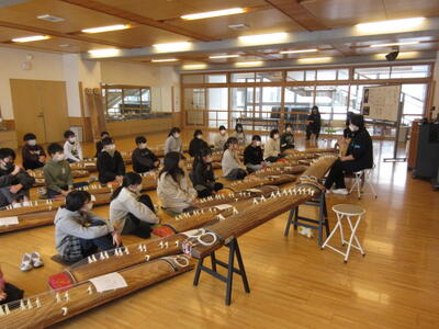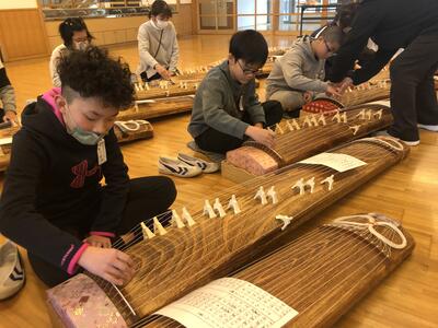 3名の琴の先生をお招きし「和楽器教室」を行いました。6年生にとっては昨年に引き続き2回目の和楽器教室となりました。その経験を生かし「さくらさくら」を上手に演奏することができました。