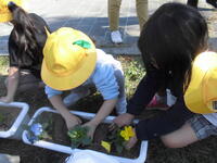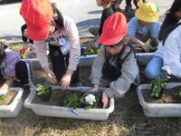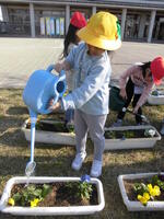 2023年11月1日 17時07分三小タイムの愛校作業でパンジーの苗を植えました。