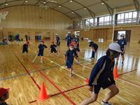 5年生と2年生で体力テストの測定を行いました。立ち幅跳び、反復横跳び、上体起こしなどに取り組みました。リズムよく跳んだり、腕と膝を使って遠くまで跳んだりと一生懸命頑張りました。