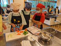 家庭科の調理実習で、短時間でできるいため料理に挑戦し「いろどりいため」を作りました。