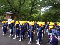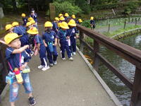 道路の歩き方も学びながら牡丹園探検に行ってきました。牡丹園では様々な植物を観察したり、鯉やトンボなどの生き物と触れ合ったりすることもできました。帰りは雨が降ってしまったので傘をさしながらとなりましたが、無事学校へ帰ってきました。