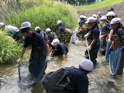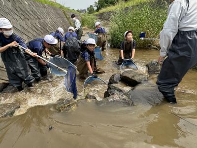 水の酸素量や透明度を調査しました。また、川の生物を調査しました。