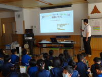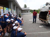 ESD環境教育学習を行いました。ゴミ問題について説明を聞き、3R(リデュース、リユース、リサイクル)の大切さやゴミの分別の仕方などを学びました。また、ゴミ収集車(パッカー車)へのゴミの投げ入れ体験をしたり、機械操作体験をしたりすることができました。