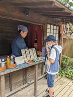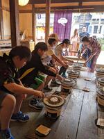 2023年6月6日 14時34分せんべい焼き体験、あいすくりぃむ、らむねなど、食べる飲む活動を満喫しています。