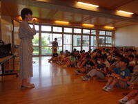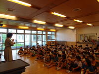リコーダー講習会を行いました。3年生になってはじめて出会うリコーダー。楽器とふれあうことで心をうきうきさせていました。リコーダーが得意になるコツについて,講師の先生に多くのことを教えていただきました。一番大切なことは,「心の中でイメージすること。」