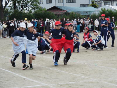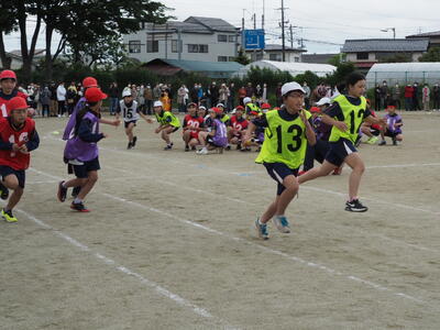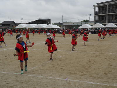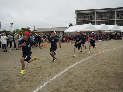 運動会を開催しました。早朝より、準備・運営等でPTA役員の方々にお世話になりました。曇り空の中でしたが、校庭全体には、子どもたちの元気とやる気が満ちあふれていました。スローガン「全力つくして! 仲間と共に 限界突破!!」が具現化されたすばらしい運動会となりました。
