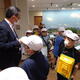 「きゅうりん館」では,きゅうりの選別作業などを見学し,職員の方に細かいところまで詳しく説明していただきました。実際に見学することで機械の速さに驚いていました。最後の質問タイムでは,さらに詳しく教えていただきました。見学させていただきありがとうございました。