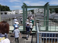 県中浄化センターへ社会科見学学習に出かけました。浄化の仕組みや説明を聞くだけでなく、浄化の際に活躍する微生物の姿を顕微鏡で見せてもらったり、実際に施設内を見学したりしました。きれいに浄化された水が阿武隈川に流れていく様子を見て、安心して生活水を使うことができるありがたさに気付かされました。