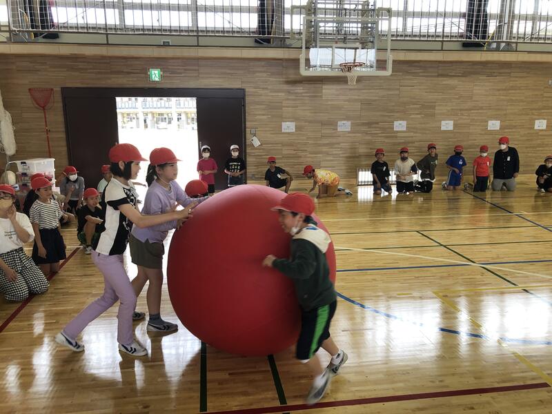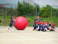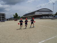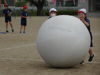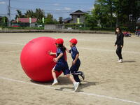 2年生の団体種目、大玉転がしの練習をしました。紅組も白組も、2人で力を合わせて上手に転がしながら走りました。練習を重ねるうちに、スピードも速くなり本番の勝負がとても楽しみです。