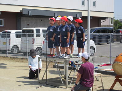 1年生にとっては初めての運動会。1年代表児童は,とても元気に開会の言葉を述べることができました。