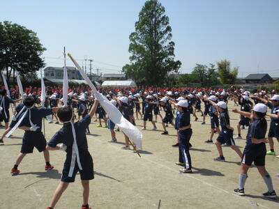 今日は,三小タイムに運動会全体練習(開会式・応援合戦)を行いました。