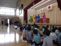 2時間目に1年生を迎える会が行われました。2年生からは、かわいいダンス、3年生からは、おしゃれな首飾りのプレゼント、4年生からは、かっこいい「よさこい」、5年生からは素敵な花のアーチ、6年生からは迫力ある鼓笛演奏のプレゼントをしてもらいました。最後には1年生からもお礼の言葉を元気に言うことができました。とても楽しくいい思い出ができました。