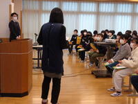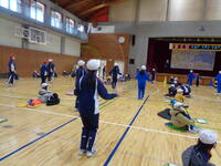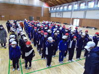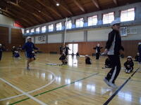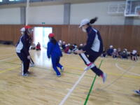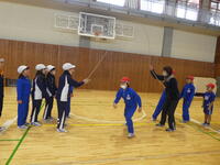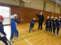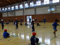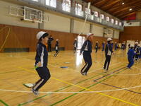 中学校の体育館をお借りして、1年生と6年生の合同なわとび記録会が行われました。1年生は、持久跳びのほか、後ろ跳び・かけ足跳びを、6年生は、うしろあや跳び・二重跳びに挑戦しました。6年生は、1年生の跳んだ回数を数えて記録してあげたり、1年生は、6年生の技を見て感嘆したりと有意義な記録会になりました。寒さに負けず、自己ベストに向けて頑張る子どもたちの姿が、とても印象的でした。