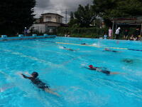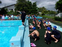 第1・2校時に5年生の校内水泳記録会が行われました。天候にも恵まれ、子どもたちは精一杯自分の記録に挑むことができました。また、クラス対抗ビート板片付け競争や4×25mフリーリレーなど、学級の威信をかけて対決する場面も見られ、とても盛り上がった記録会となりました。