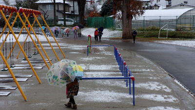 今朝は,学校周辺に初雪が降りました。うっすらと校庭に積もった程度でしたが,子ども達は雪に見入っていました。いよいよ冬の到来です。寒さがさらに厳しくなってきますので,くれぐれも健康管理にご留意ください。