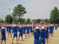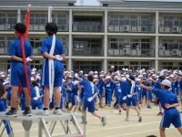 今日は、入場行進、開会式、ラジオ体操、閉会式の練習をしました。