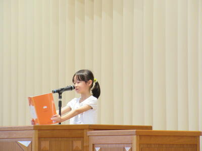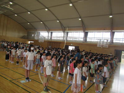 また、「夏休みは自分の命を自分で守るために、『けがをするかもしれないな。』『気をつけないと危ないな。』と、危険を予測して行動しましょう。夏休みは時間割がなく、自分で計画を立てて生活できる楽しみがあります。だらだらと過ごすこともできますが、目標をもって充実した夏休みにしてほしいです。」というお話もありました。