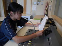 発表にあたっては、放送委員さんがマイクの位置や話すスピードについて細かく教え、リハーサルをしてくれました。頼もしい!