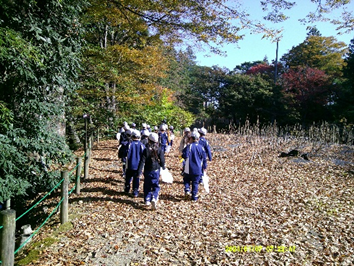 2025年11月12日 10時57分生活科の学習で牡丹園に行きました。今回は、「夏とはちがうところ」「秋を見つけること」を目的として活動に取り組みました。