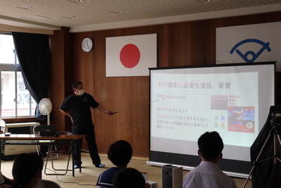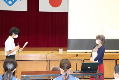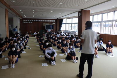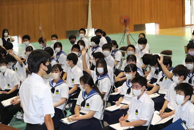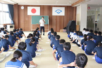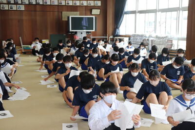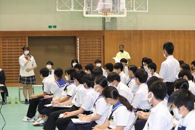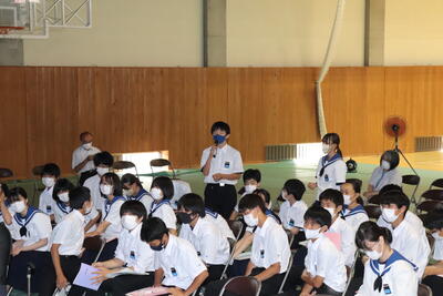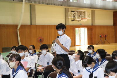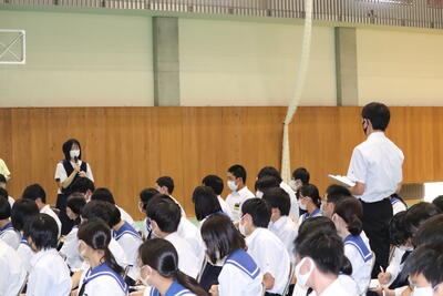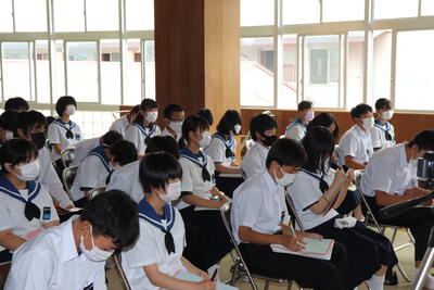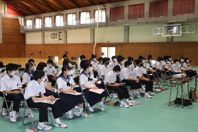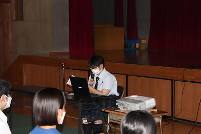 2022年7月15日 19時01分3年生では、学年集会で松明あかしについてのガイダンスが行われました。