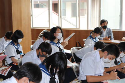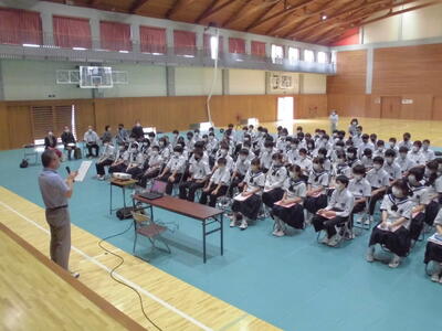 2022年7月10日 17時04分本校PTAの方々のご協力により、「職業人に聞く会」と題して、様々な分野の職業に携わっている方々のお話を聞くことができました。職業に対する関心を高めるとともに、働くことの意義や今後の生活にどう生かしていくのかなど考える良い機会となりました。進行からお礼の言葉まで生徒たちが分担して運営しました。真剣に話を聞きながら、質問もたくさん飛び交い、子どもたちの意欲が大いに感じられました。ご講話いただいた講師の皆様に深く感謝いたします。ありがとうございました。