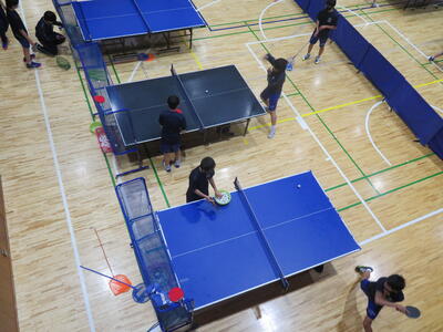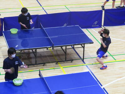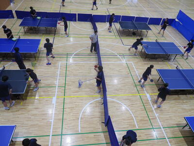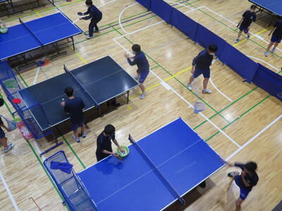 2022年5月25日 14時08分男子ソフトテニス部は、2・3年生中心にコートで、すとろーくやボレー練習に取り組んでいました。速くて強いボールでも、サイドを抜かれないよう集中してボレーを返していました。