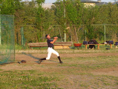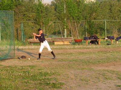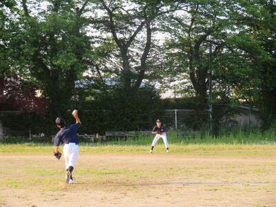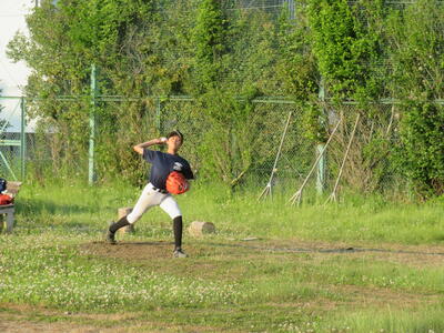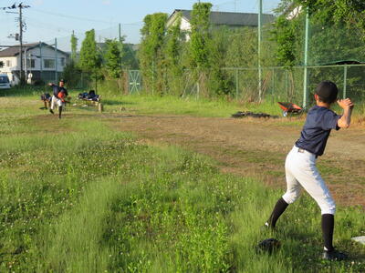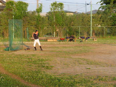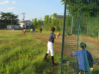 2022年5月25日 13時52分野球部は人数が少ない中、キャッチボール、投球練習、フリーバッティングなど、顧問の先生と共に汗を流していました。