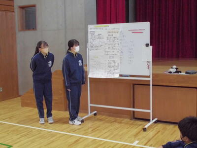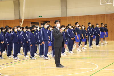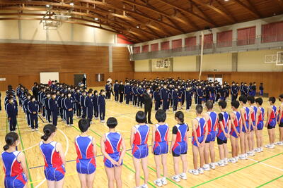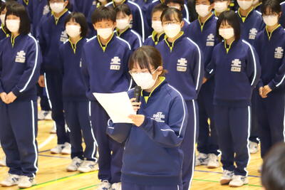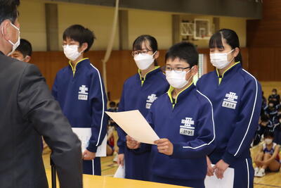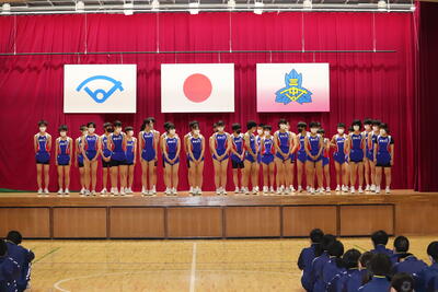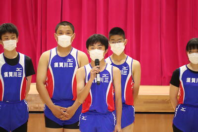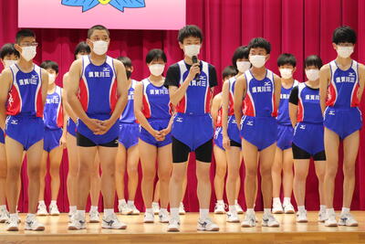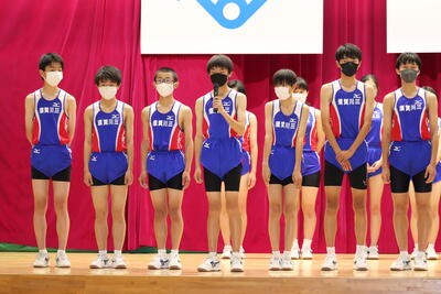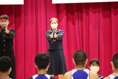 2022年5月16日 18時48分支部陸上大会がいよいよ明後日に迫ってきました。選手の皆さんを激励するため、選手壮行会が開催されました。これまでの壮行会とは異なり、オープニングで特設陸上部の練習風景をスライドで上映しました。普段見れなかった選手の皆さんの頑張りが見れて本当に良かったです。そして選手紹介や応援団による壮行応援で盛り上がりました。選手の皆さんの活躍を期待し、三中生全員で応援しています。頑張ってください。