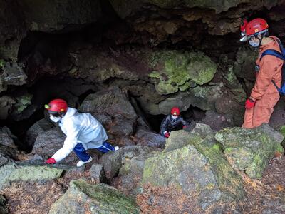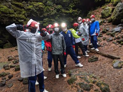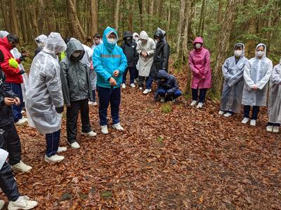2022年4月14日 16時25分修学旅行の生徒達は、午後から青木ヶ原樹海の洞窟探検を行いました。