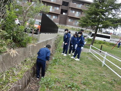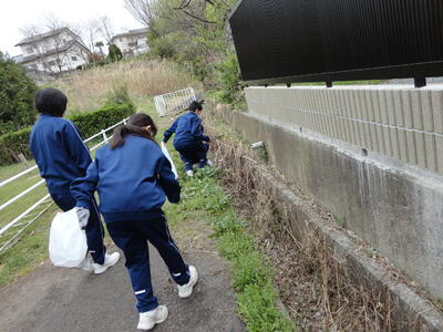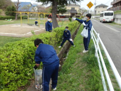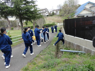 2022年4月14日 17時13分本日の1・2校時に、学校に残っている1・2年生が、地域クリーンアップ作戦を行いました。これは、地域の清掃を行うことで、奉仕の精神や地域を見つめ直す目を養い、環境問題について考えるきっかけとするものです。