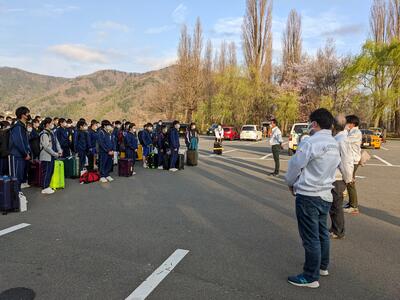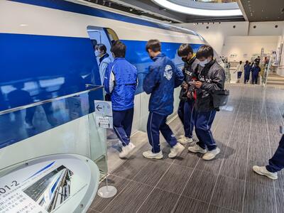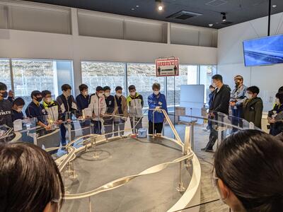 2022年4月14日 10時07分修学旅行生たちは、本日最初の見学地、山梨リニア見学センターに到着しました。