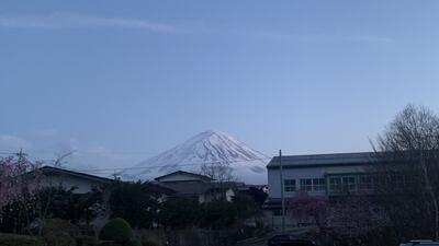 2022年4月14日 07時41分おはようございます。修学旅行2日目の朝を迎えました。今日は全国的に天気が心配されます。山梨もどんよりと曇っていて富士山もかくれています。雨の影響が少ないといいのですが…