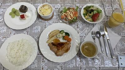 2022年4月14日 12時59分2日目の昼食の様子です。心配された雨もまだ降っていないという現地からの連絡でした。それでも少し寒いようなので、昼食の鍋料理はありがたいですね。午後は、青木ヶ原樹海の洞窟探検です。