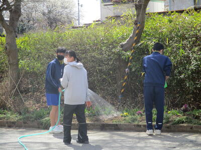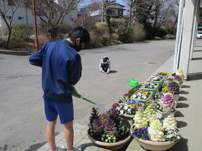 2022年3月31日 15時29分生徒会役員が、これまでお花の世話をしてくださった関根さんから、お花の水やりという大事な仕事を春休みの期間、引き継ぎました。これまで、きれいなお花で私たちに元気を与えてくださった関根さんに感謝しながら、大事にお世話をしていくようです。