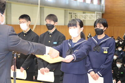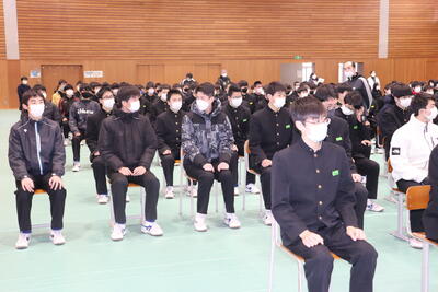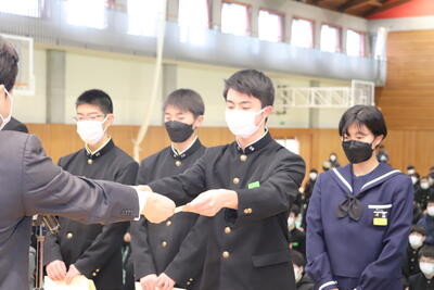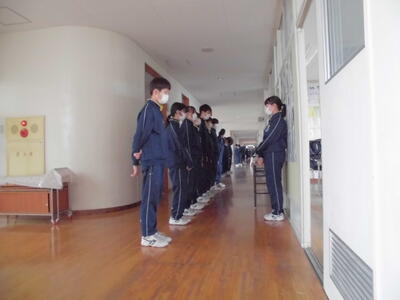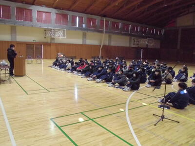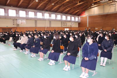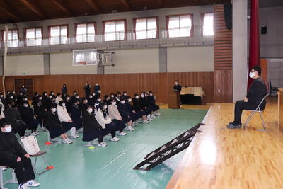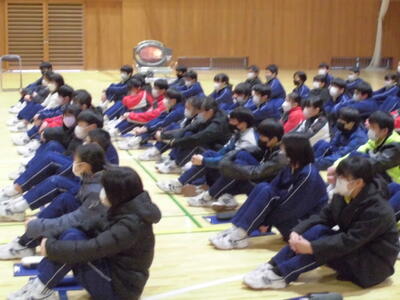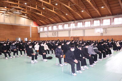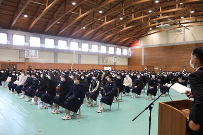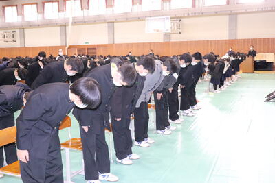 2022年2月17日 17時23分卒業式の全体練習を行いました。今回は、卒業式の意義や内容の確認、そして礼法指導です。座り方やタイミング、礼の仕方などの練習をしました。3年生はさすがですね。1・2年生頑張れ!卒業まで1ヶ月をきっています。新型コロナ感染予防のため様々な制限がある式とはなりますが、みんなで最高の式にしていきたいと思います。