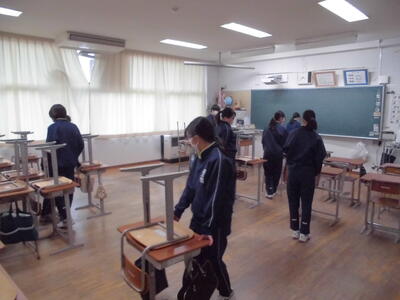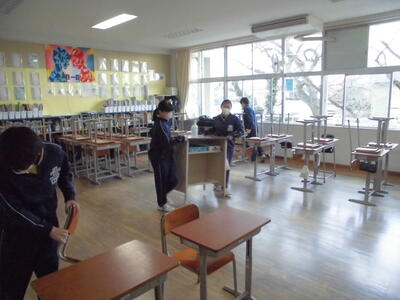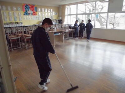 2022年2月16日 19時22分みんな黙々と取り組んでいます。サボる人は一人もいません。さすが三中生です。校舎は古いですが、きれいにするために日々頑張っています。
