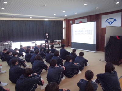 2022年1月21日 15時06分3年生において、思春期性教育を行いました。講師に松本美津子先生をお招きして、性感染症の予防や異性を尊重し合うことの大切さについてご講話いただきました。