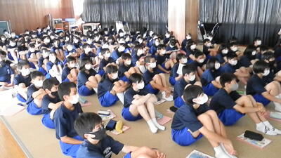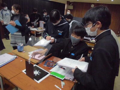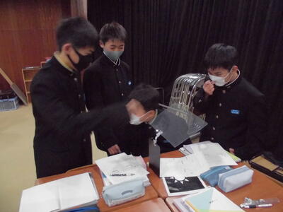 2021年12月8日 13時16分校内授業研究会を行いました。1年3組の理科の授業です。光の反射についての授業でしたが、みんな楽しく生き生きと学習していました。