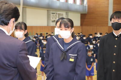 2021年10月12日 07時40分いよいよ後期の活動がスタートします。学級活動や生徒活動など心機一転頑張っていきましょう。任命された皆さん、学校や学級の代表として活躍を期待しています。